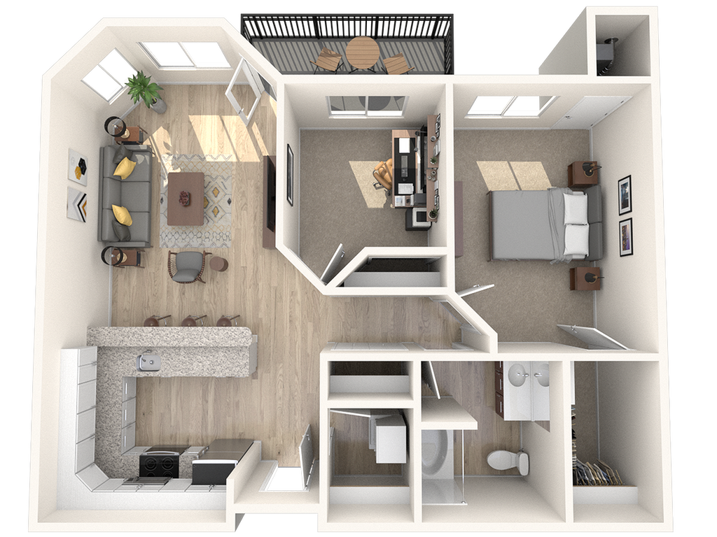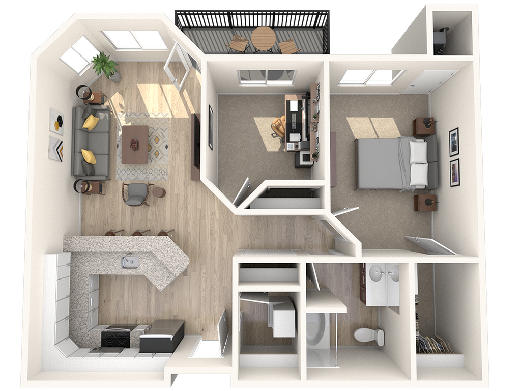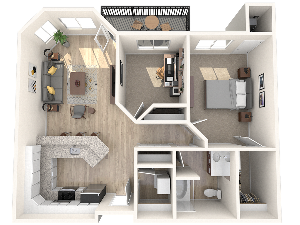 1 Dormitorio, 1 Baño, 817 pies²Precio Mensual TotalDisponible February 4, 2026Galería del Modelo