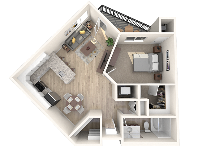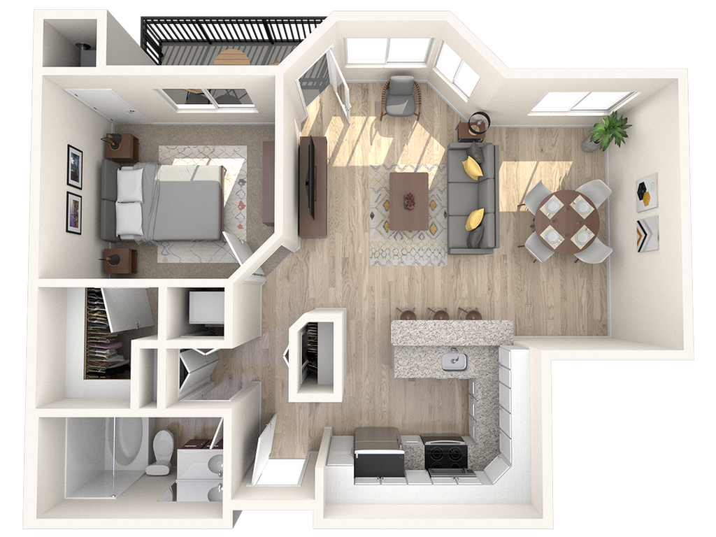 1 Dormitorio, 1 Baño, 875 pies²Precio Mensual TotalDisponible Dec 6Galería del Modelo