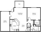 1 Dormitorio, 1 Baño, 841 pies²Galería del Modelo