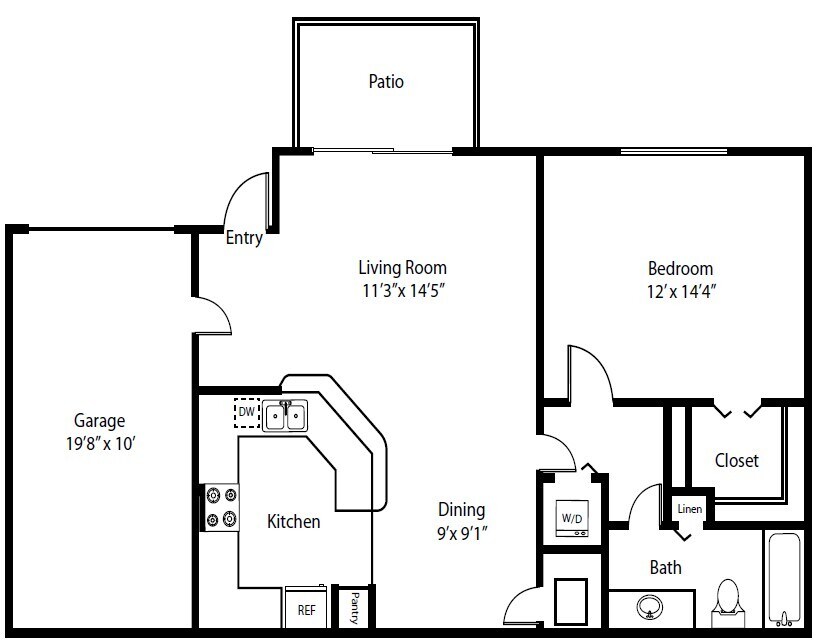 Modelo de apartamento: A1-G-PRLlame para Precios1 Dormitorio, 1 Baño, 751 sq ftNo DisponibleLos planos son representaciones artísticas. Todas las dimensiones son aproximadas. El producto y las especificaciones reales pueden variar en tamaño o detalle. No todas las características están disponibles en cada vivienda en alquiler. Por favor, consulta con un representante para obtener más detalles.