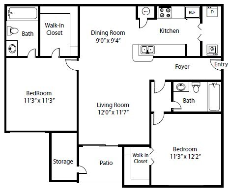 Modelo de apartamento: B1Llame para Precios2 Dormitorios, 2 Baños, 1072 sq ftNo DisponibleLos planos son representaciones artísticas. Todas las dimensiones son aproximadas. El producto y las especificaciones reales pueden variar en tamaño o detalle. No todas las características están disponibles en cada vivienda en alquiler. Por favor, consulta con un representante para obtener más detalles.