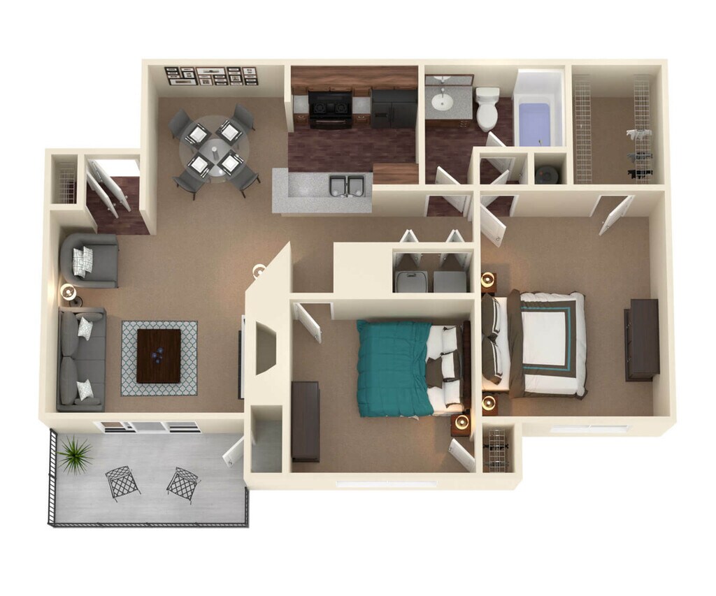 2 Dormitorios, 1 Baño, 969 pies²Disponible AhoraGalería del Modelo