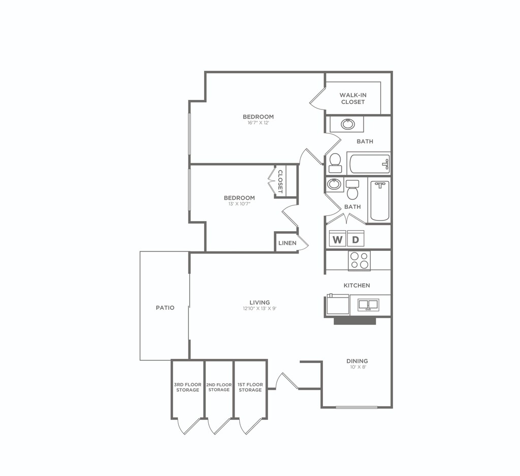 Two Bedroom Two Bath (1269 SF) - Plano 1 3 Dormitorios