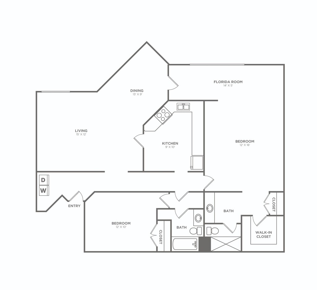 Ver Planos No DisponiblesTwo Bedroom Two Bath (1021 SF)