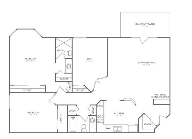 Modelo de apartamento: A1WLlame para Precios1 Dormitorio, 1 Baño, 845 sq ftNo DisponibleLos planos de la planta son una interpretación artística. Todas las dimensiones son aproximadas. Los tamaños o el detalle del producto real y sus especificaciones pueden variar. No todas las características están disponibles en todos los hogares para rentar. Los precios y la disponibilidad están sujetos a cambios. El alquiler que se muestra es mensual. Se pueden aplicar ciertos cargos, por ejemplo, entrega de paquetes, recolección de basura, agua, servicios, etc. Depositos varian. Consulta a un representante para conocer detalles.