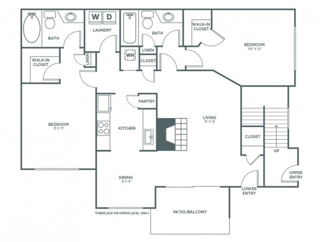 Modelo de apartamento: Two Bedroom Two Bath (1120 SF)Desde $1,4432 Dormitorios, 2 Baños, 1120 sq ftDisponible AhoraLos planos de la planta son una interpretación artística. Todas las dimensiones son aproximadas. Los tamaños o el detalle del producto real y sus especificaciones pueden variar. No todas las características están disponibles en todos los hogares para rentar. Los precios y la disponibilidad están sujetos a cambios. El alquiler que se muestra es mensual. Se pueden aplicar ciertos cargos, por ejemplo, entrega de paquetes, recolección de basura, agua, servicios, etc. Depositos varian. Consulta a un representante para conocer detalles.