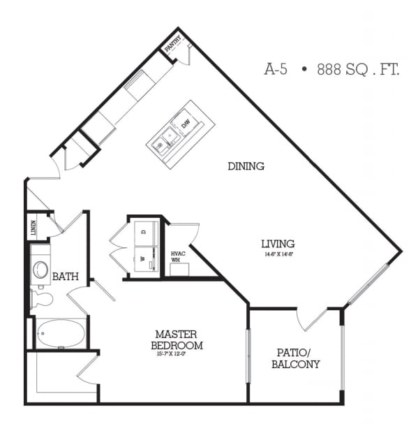 A5 (888 SF) - Plano 1 Los planos de la planta son una interpretación artística. Todas las dimensiones son aproximadas. Los tamaños o el detalle del producto real y sus especificaciones pueden variar. No todas las características están disponibles en todos los hogares para rentar. Los precios y la disponibilidad están sujetos a cambios. El alquiler que se muestra es mensual. Se pueden aplicar ciertos cargos, por ejemplo, entrega de paquetes, recolección de basura, agua, servicios, etc. Depositos varian. Consulta a un representante para conocer detalles.