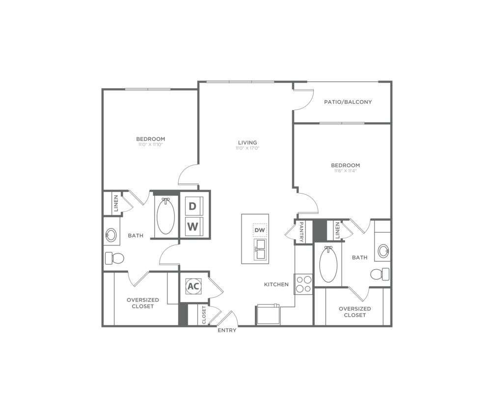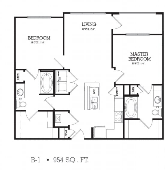 1 Dormitorio, 1 Baño, 888 pies²Disponible AhoraEl más grandeEsta opción tiene las unidades más grandes para este modeloGalería del Modelo