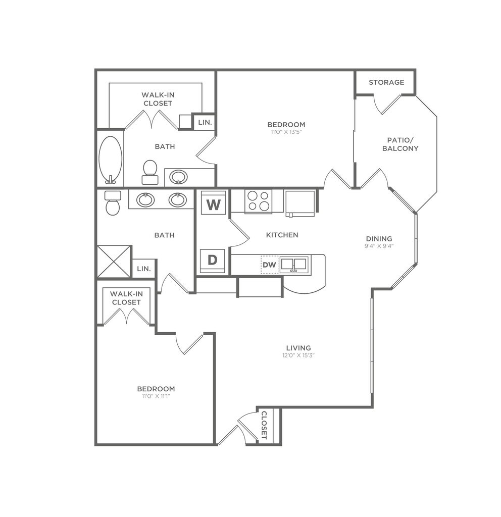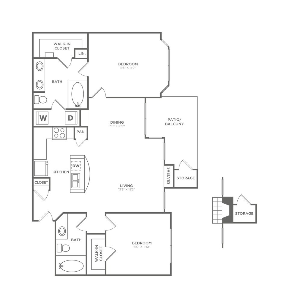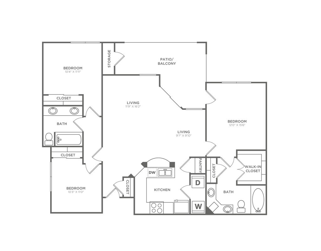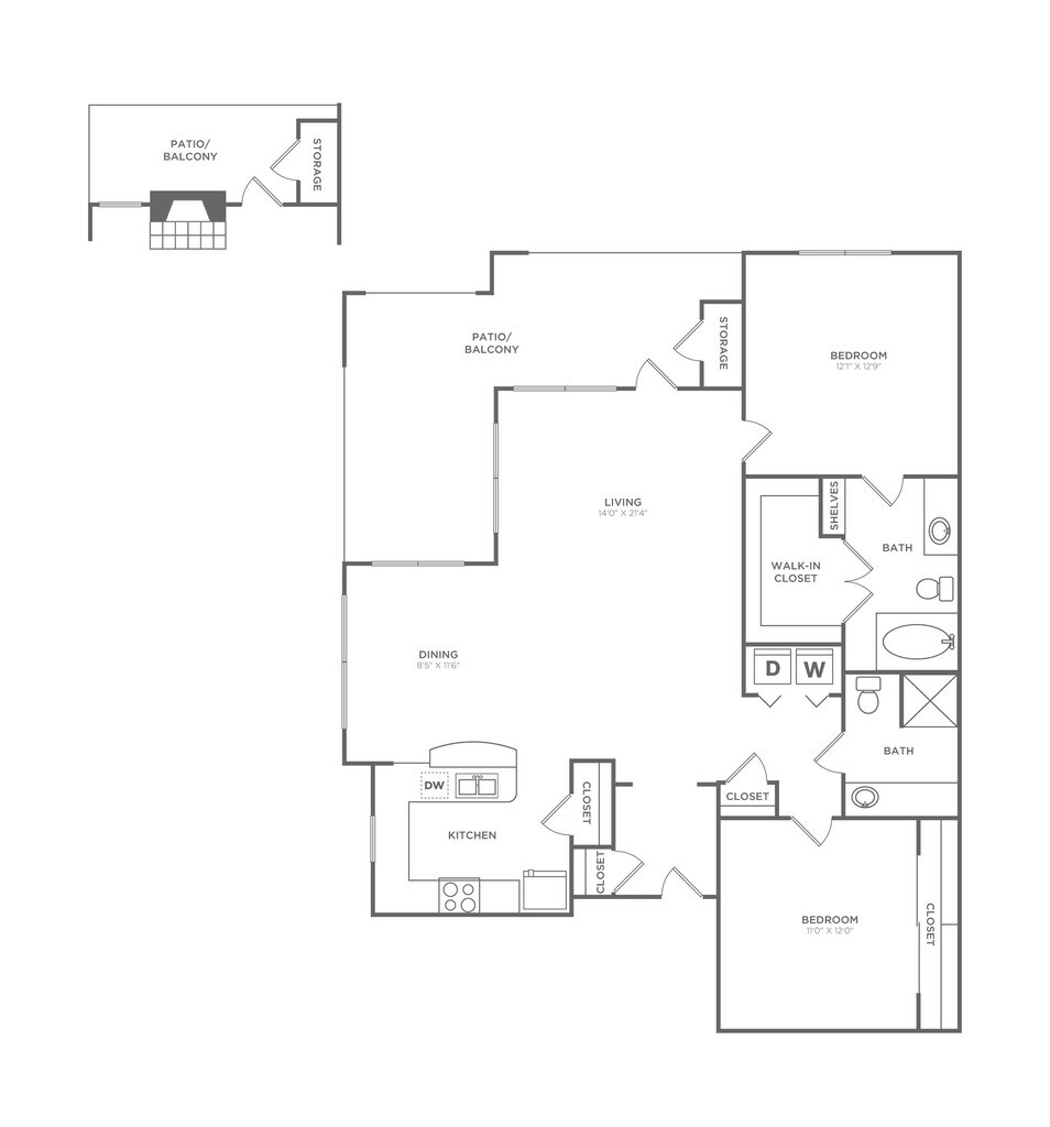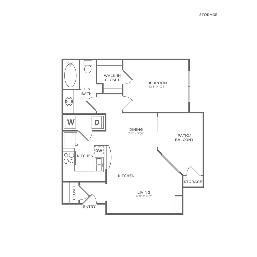 1 Dormitorio, 1 Baño, 850 pies²Disponible AhoraGalería del Modelo