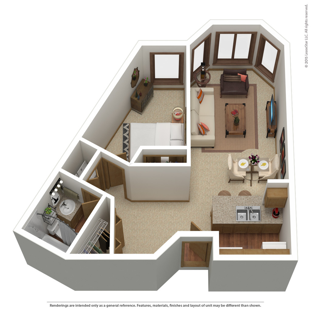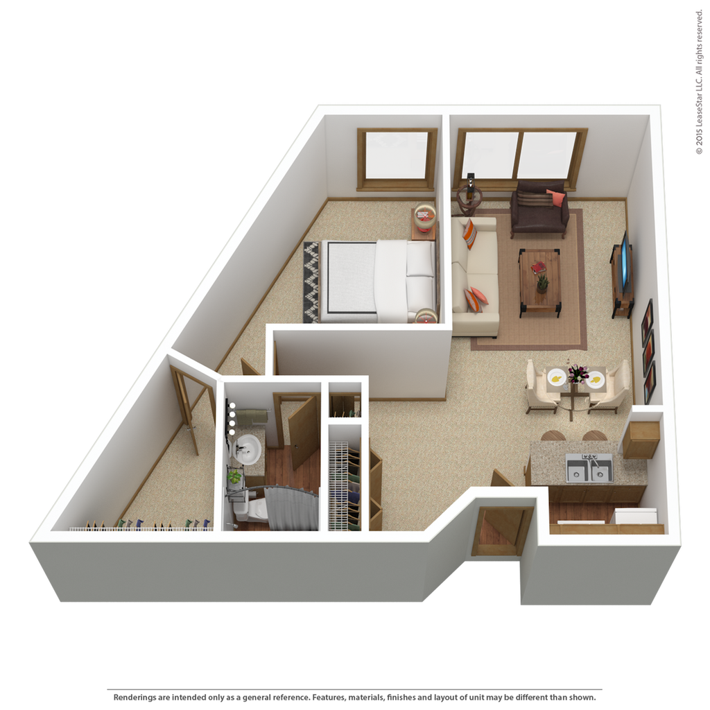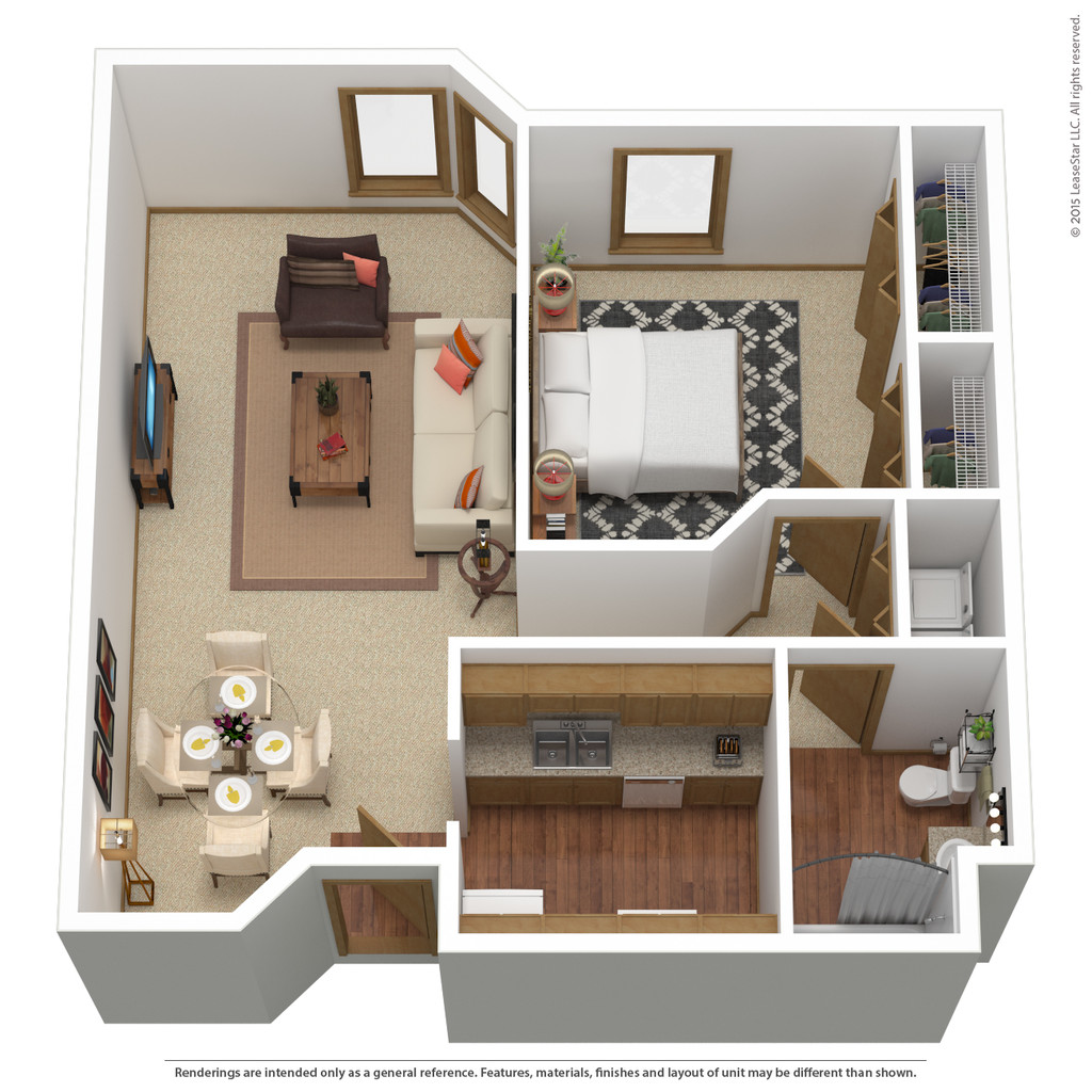 Estudio, 1 Baño, 617 pies²Galería del Modelo