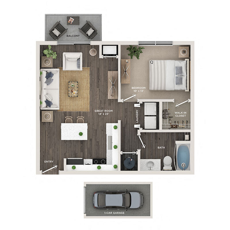 1 Dormitorio, 1 Baño, 637 pies²Galería del Modelo