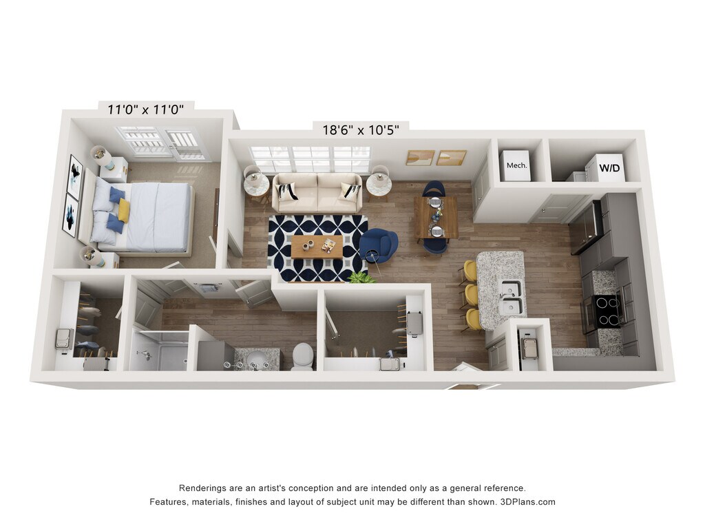 Modelo de apartamento: AOA1 Dormitorio, 1 Baño, 657 sq ftDisponible January 26, 2026![]()