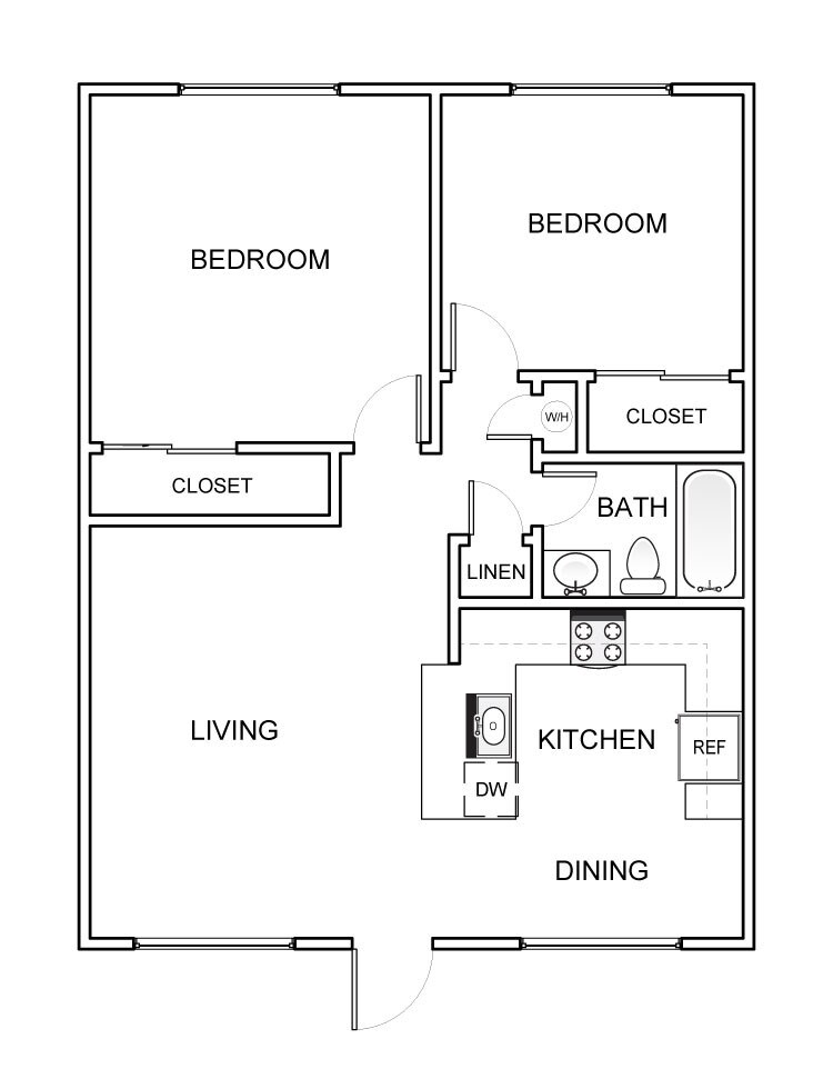 2 Dormitorios, 1 Baño, 854 pies²Galería del Modelo