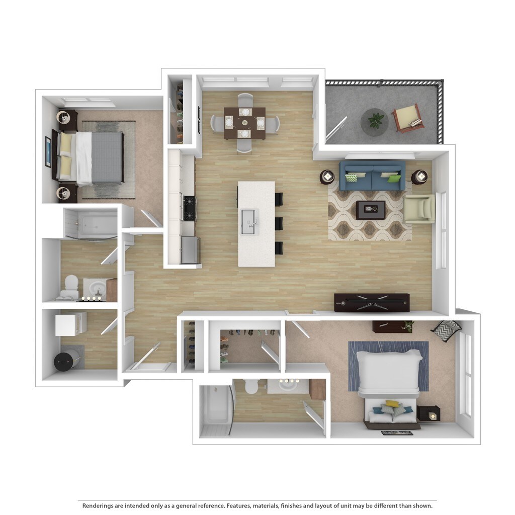 Modelo de apartamento: 2B 2B Plan DLlame para Precios2 Dormitorios, 2 Baños, 1180 sq ftNo Disponible![]()