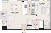 Modelo de apartamento: Plan 6Desde $2,8451 Dormitorio, 1 Baño, 752 sq ftDisponible AhoraLos planos son representaciones artísticas. Todas las dimensiones son aproximadas. El producto y las especificaciones reales pueden variar en tamaño o detalle. No todas las características están disponibles en cada vivienda en alquiler. Por favor, consulta con un representante para obtener más detalles.