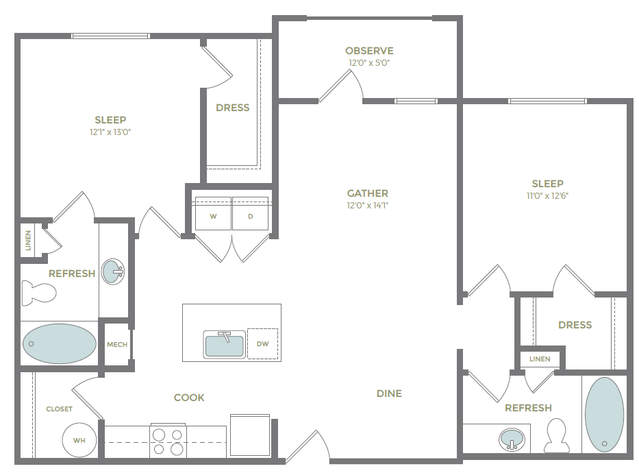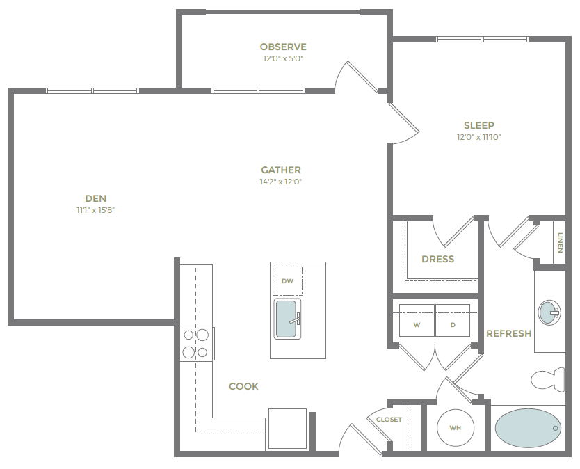1 Dormitorio, 1 Baño, 1005 pies²Disponible AhoraEl más grandeEsta opción tiene las unidades más grandes para este modeloGalería del Modelo