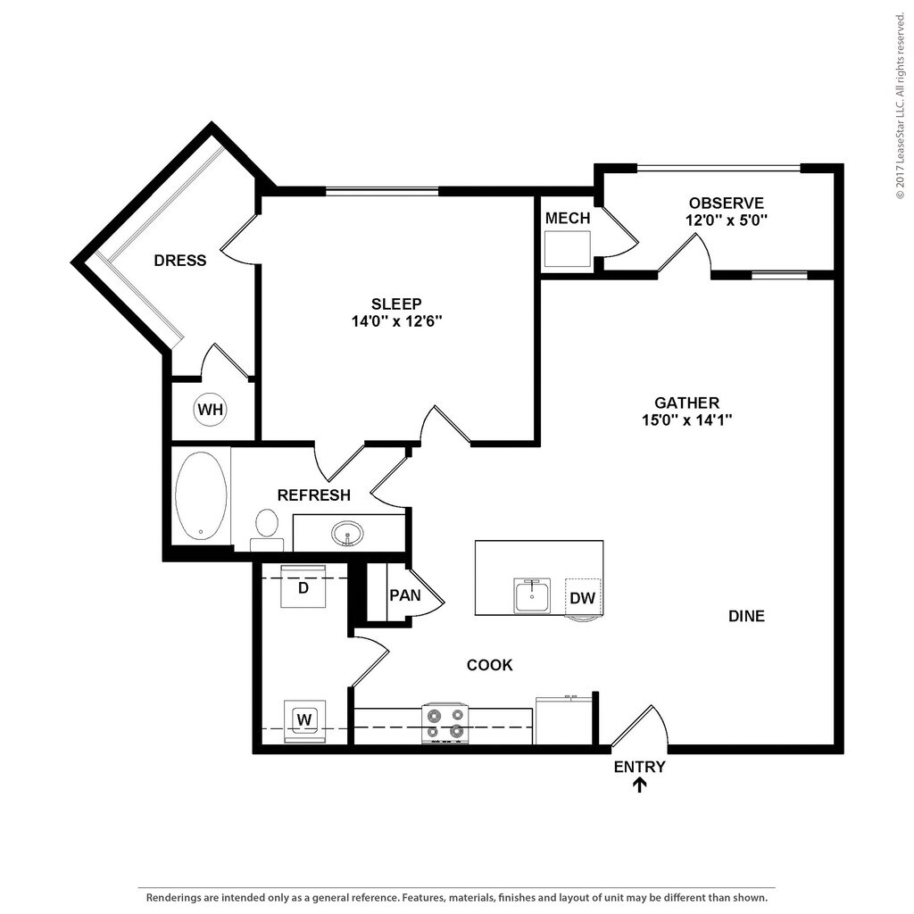 1 Dormitorio, 1 Baño, 812 pies²Disponible AhoraGalería del Modelo