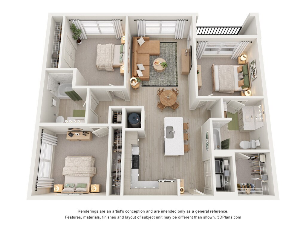 3 Dormitorios, 2 Baños, 1230 pies²Disponible Nov 14Galería del Modelo