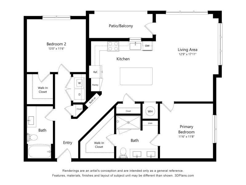 1 Dormitorio, 1.5 Baños, 951 pies²El más grandeEsta opción tiene las unidades más grandes para este modeloGalería del Modelo