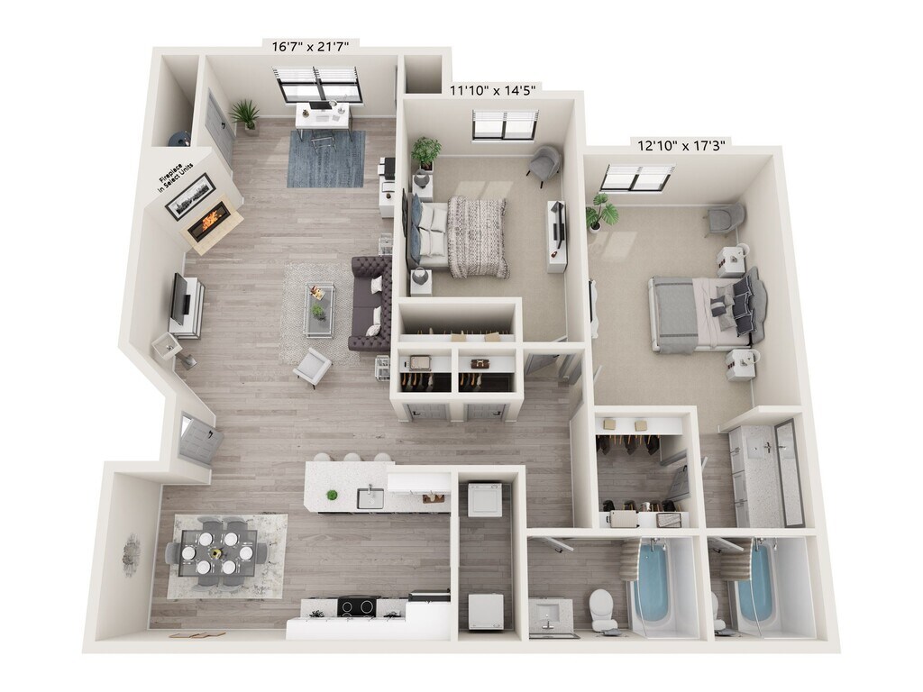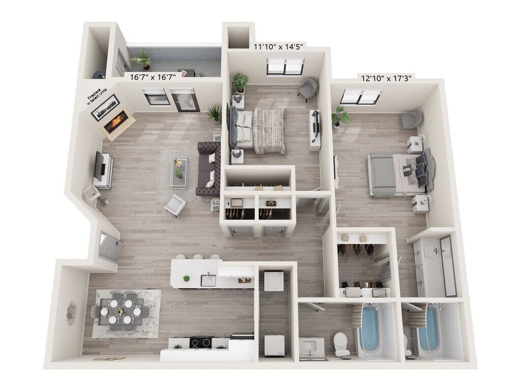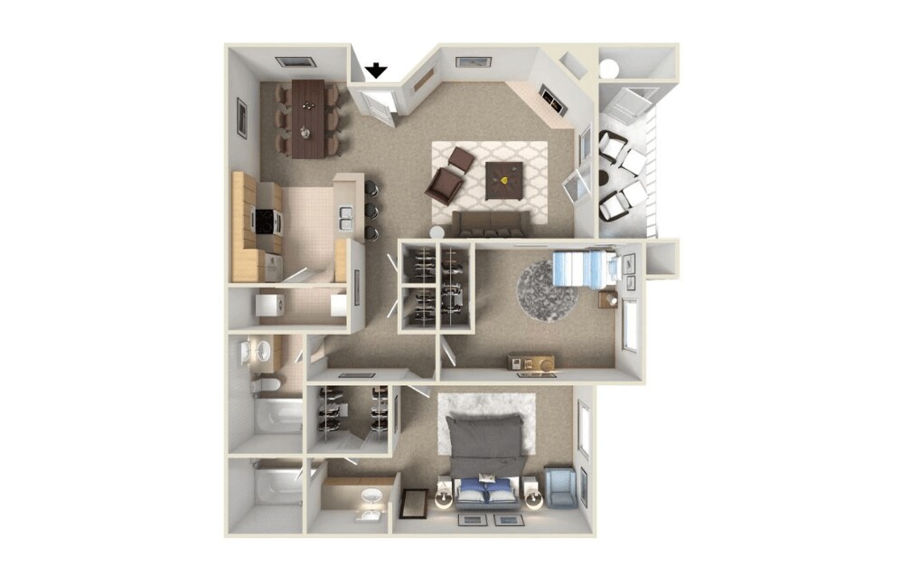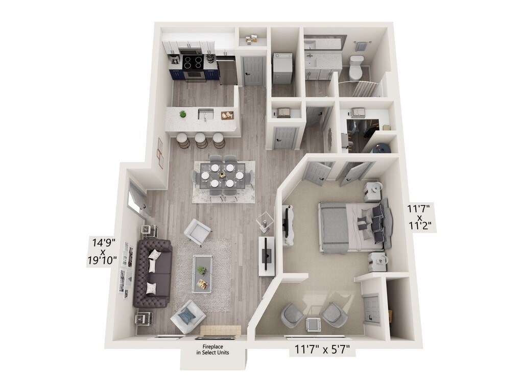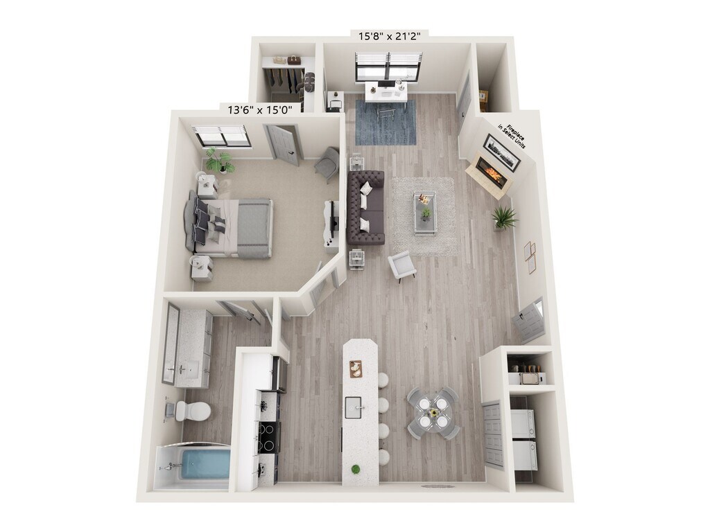 1 Dormitorio, 1 Baño, 870 pies²Disponible AhoraGalería del Modelo