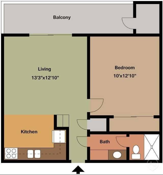 Modelo de apartamento: A2U1 Dormitorio, 1 Baño, 805 sq ftNo DisponibleA2U - Plano 1