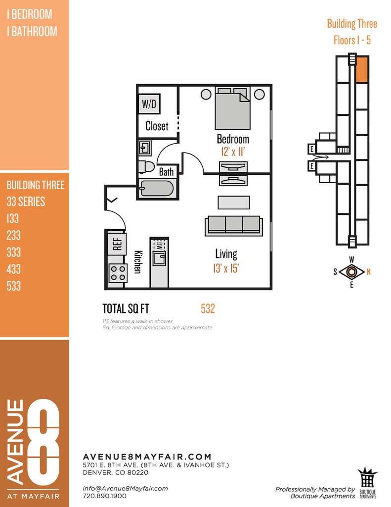Todos los apartamentos Avenue 8 en Mayfair de 1 y 2 dormitorios están diseñados desde el piso superior. Piensa en planos de planta versátiles, ventanas grandes, techos de hormigón a la vista, almacenaje inteligente, y esto es solo el comienzo. Avenue 8 mima a su perro con un salón interior para perros, un parque al aire libre y un lavado para perros. También ofrece increíbles servicios comunitarios, como un estudio de yoga con clases semanales gratuitas, un gimnasio, un centro multimedia y un lounge en la azotea con impresionantes vistas a las montañas. Estacionamiento disponible fuera de la calle. Con una ubicación céntrica en 8th Avenue e Ivanhoe Street, en el tranquilo barrio de Mayfair, Avenue 8 se encuentra a pocos pasos de las tiendas del barrio de Mayfair, los senderos para ir al trabajo y Mayfair Park. En pocos minutos, puedes estar en las tiendas de Cherry Creek, restaurantes en Lowry Town Center o de trabajo en el centro de la ciudad de Denver o el Anschutz Medical Campus. Boutique Apartments, gestionado por Portus, LLC Portable Tenant Screening Reports (PTSR): 1) El Solicitante tiene derecho a proporcionar a Boutique Apartments, gestionado por Portus LLC, un PTSR con una antigüedad no superior a 30 días, según se define en 38-12-902(2.5), los Estatutos Revisados de Colorado; y 2) si el Solicitante proporciona a Boutique Apartments un PTSR, se prohíbe a Boutique Apartments: a) cobrar al Solicitante una tarifa de solicitud de alquiler; o b) cobrar al Solicitante una tarifa por Boutique Apartments para acceder o utilizar el PTSR.