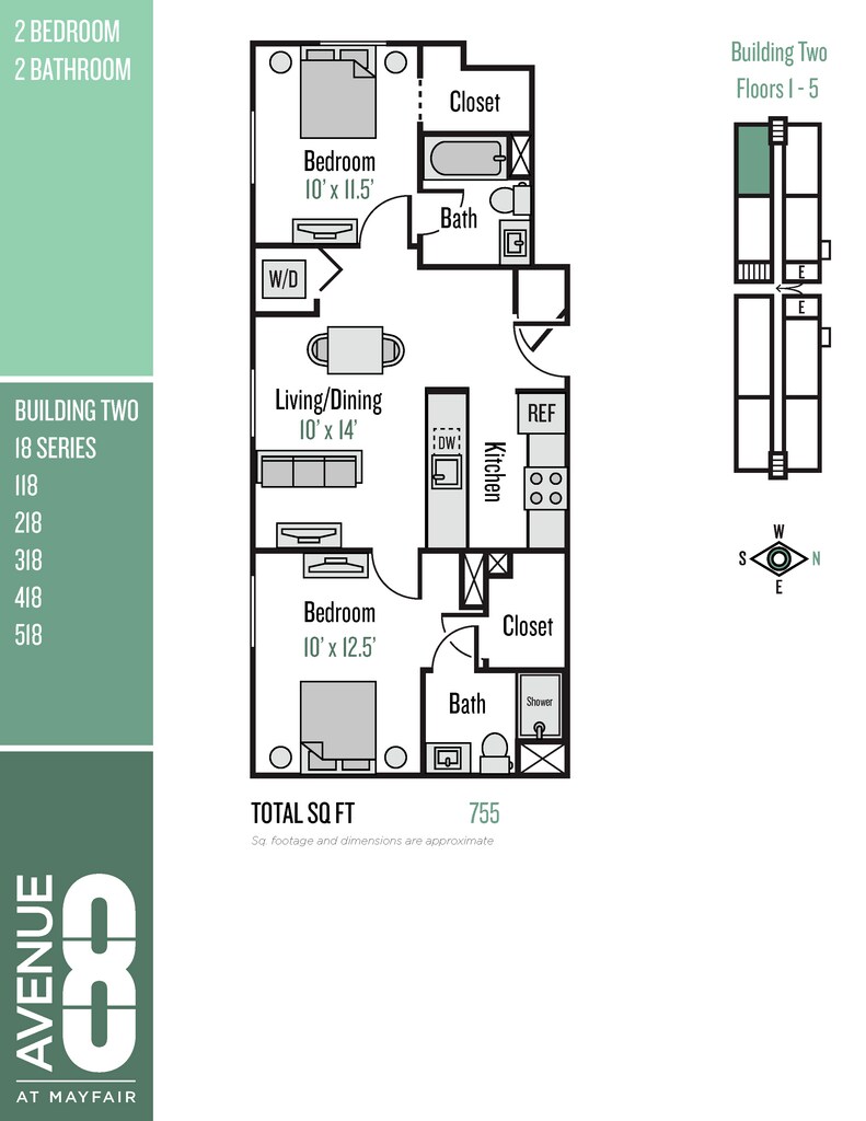 Avenue 8 at Mayfair ofrece apartamentos de 1 a 2 Dormitorios desde $1,195 con 531–809 pies cuadrados. Aquí está el precio actual y la disponibilidad:
