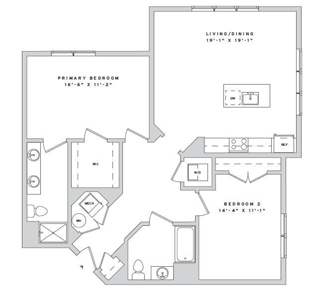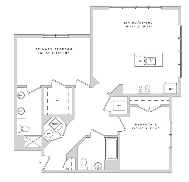 Modelo de apartamento: 1 Bd 1BDesde $2,3681 Dormitorio, 1 Baño, 733 sq ftDisponible Ahora![]()