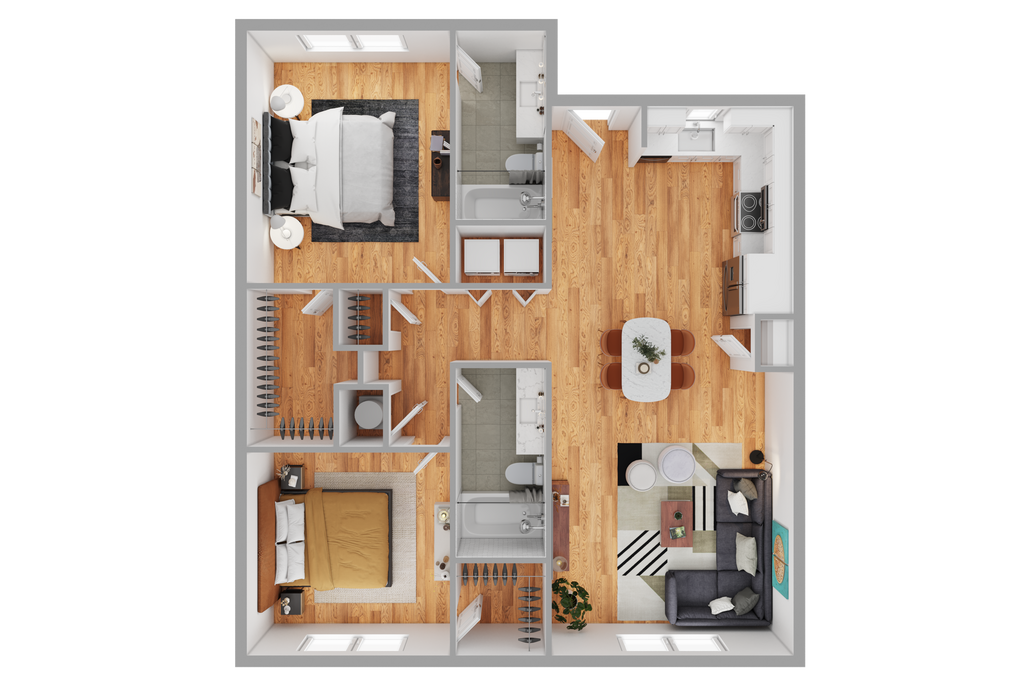 2 Dormitorios, 2 Baños, 960 pies²Disponible January 9, 2026Galería del Modelo