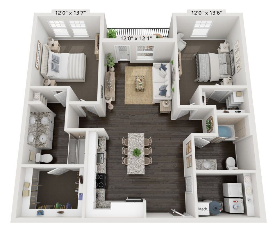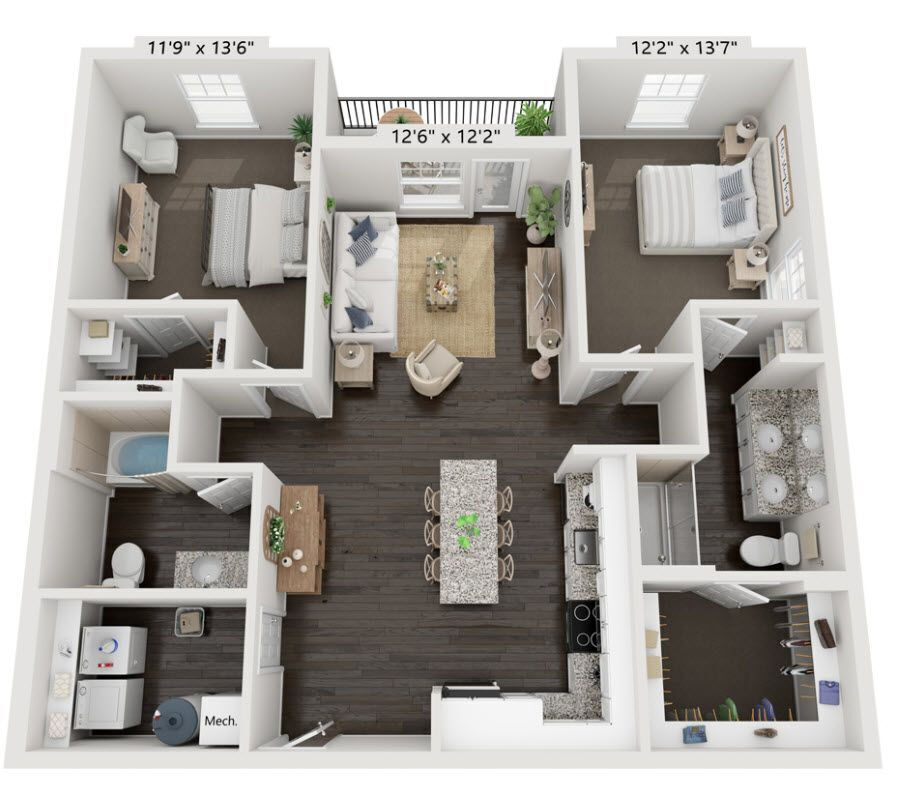 Modelo de apartamento: A2LLDesde $1,2501 Dormitorio, 1 Baño, 816 sq ftDisponible Ahora![]()