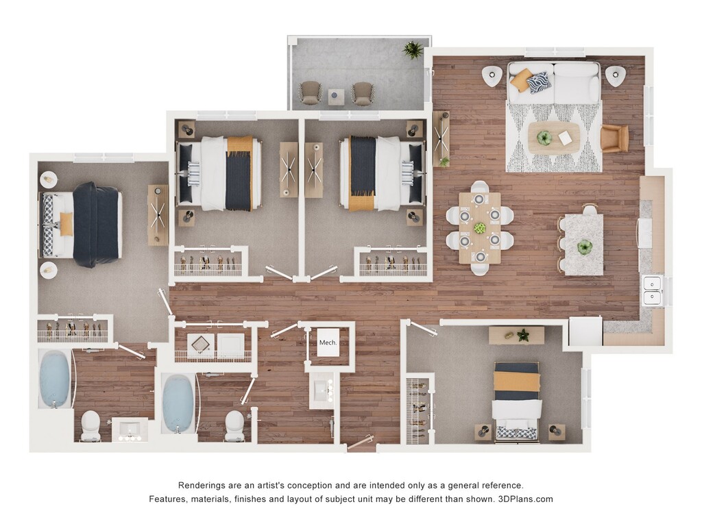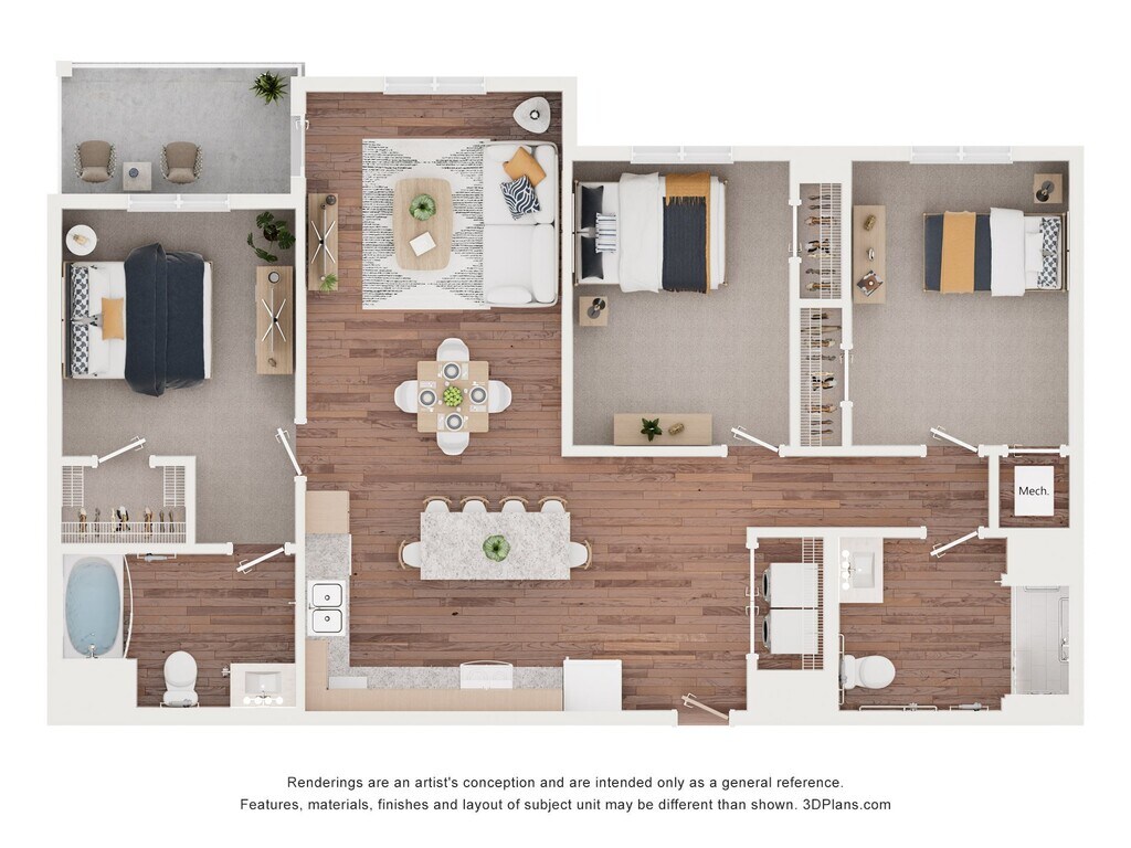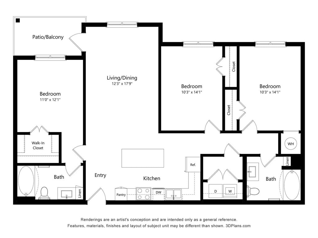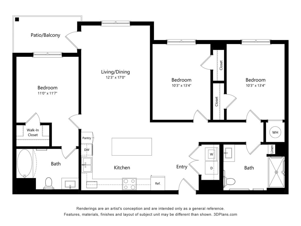 Modelo de apartamento: 3AAV (Audio/Visual Accessible)$9613 Dormitorios, 2 Baños, 1314 sq ftDisponible April 23, 2027![]()