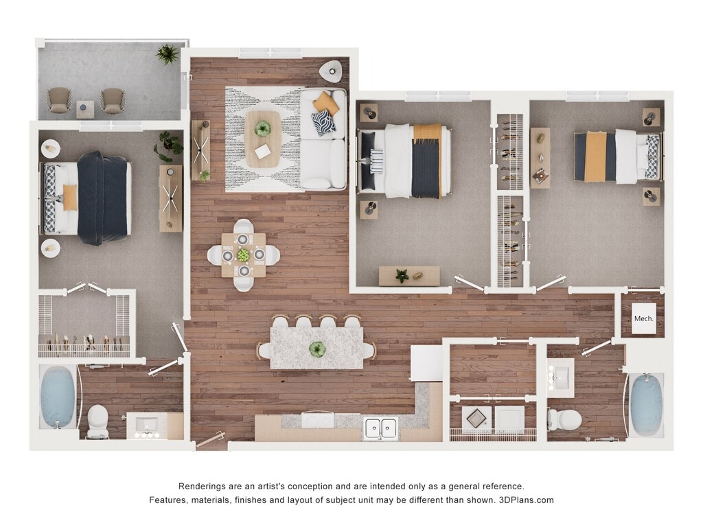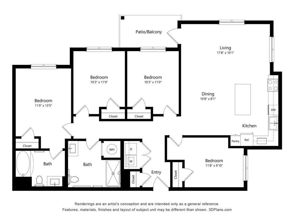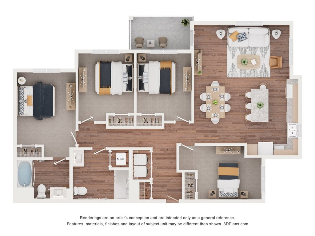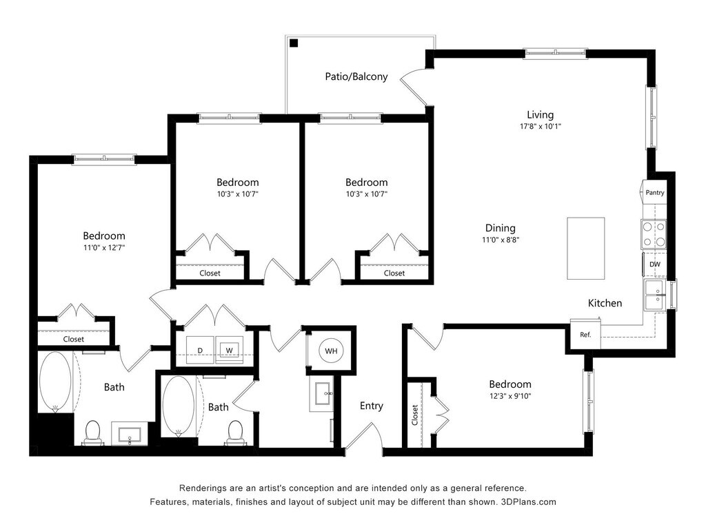 Modelo de apartamento: 3AAV (Audio/Visual Accessible)$9613 Dormitorios, 2 Baños, 1314 sq ftDisponible April 23, 2027![]()