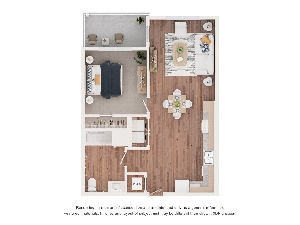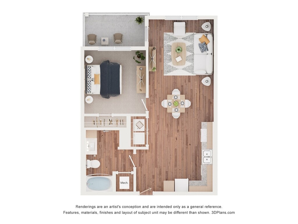 1 Dormitorio, 1 Baño, 766 pies²Disponible April 23, 2027Galería del Modelo