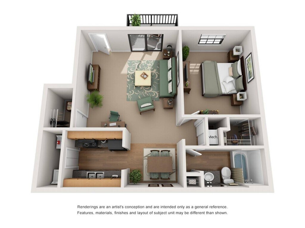 1 Dormitorio, 1 Baño, 770 pies²Disponible AhoraGalería del Modelo