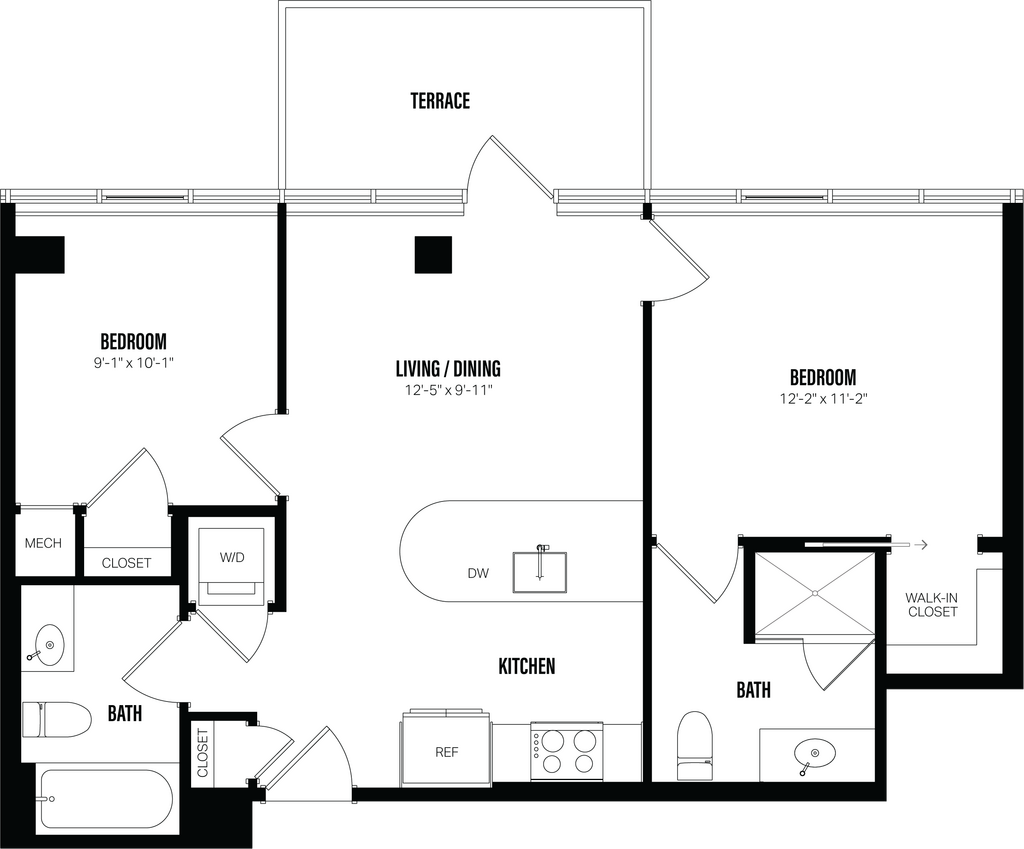 Studio-A5 - Plano Unidad de apartamento: 112Modelo de apartamento: Studio-A5$2,475Estudio, 1 Baño, 412 sq ftDisponible June 1, 2026![]()