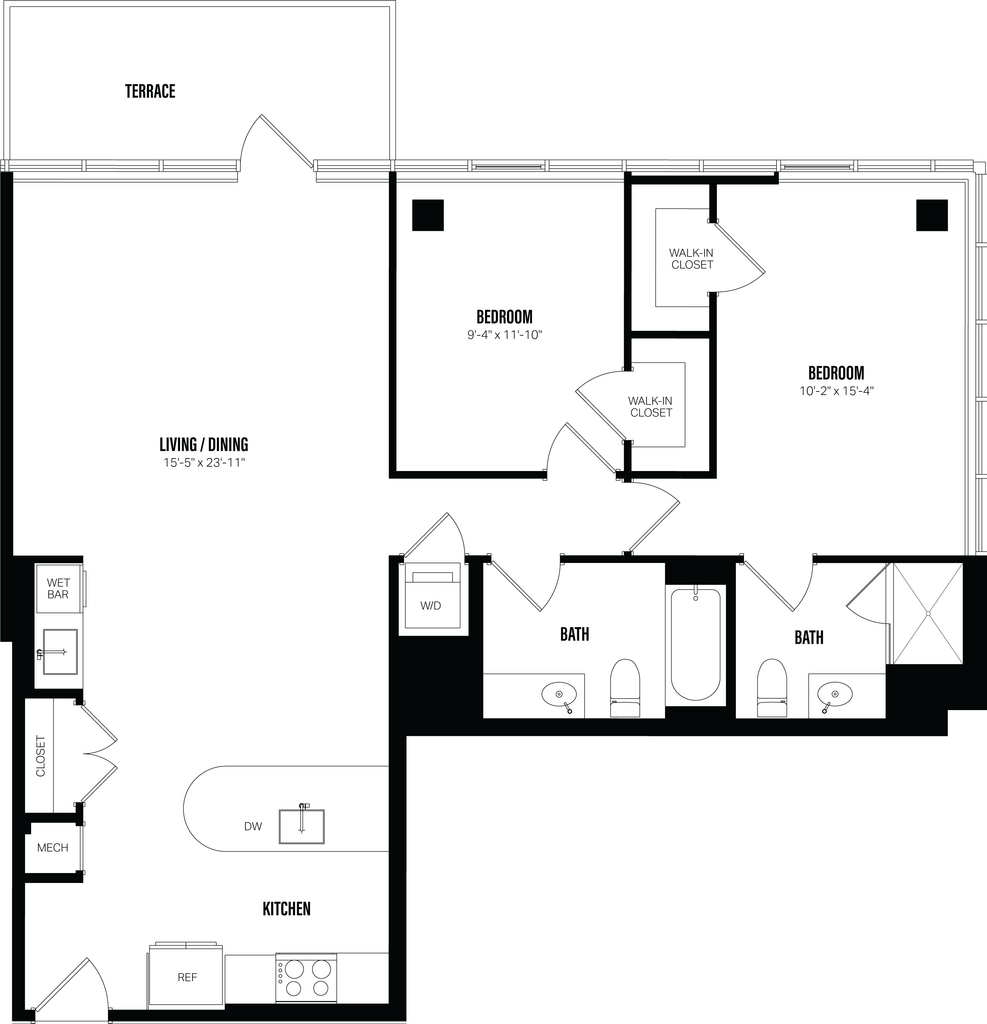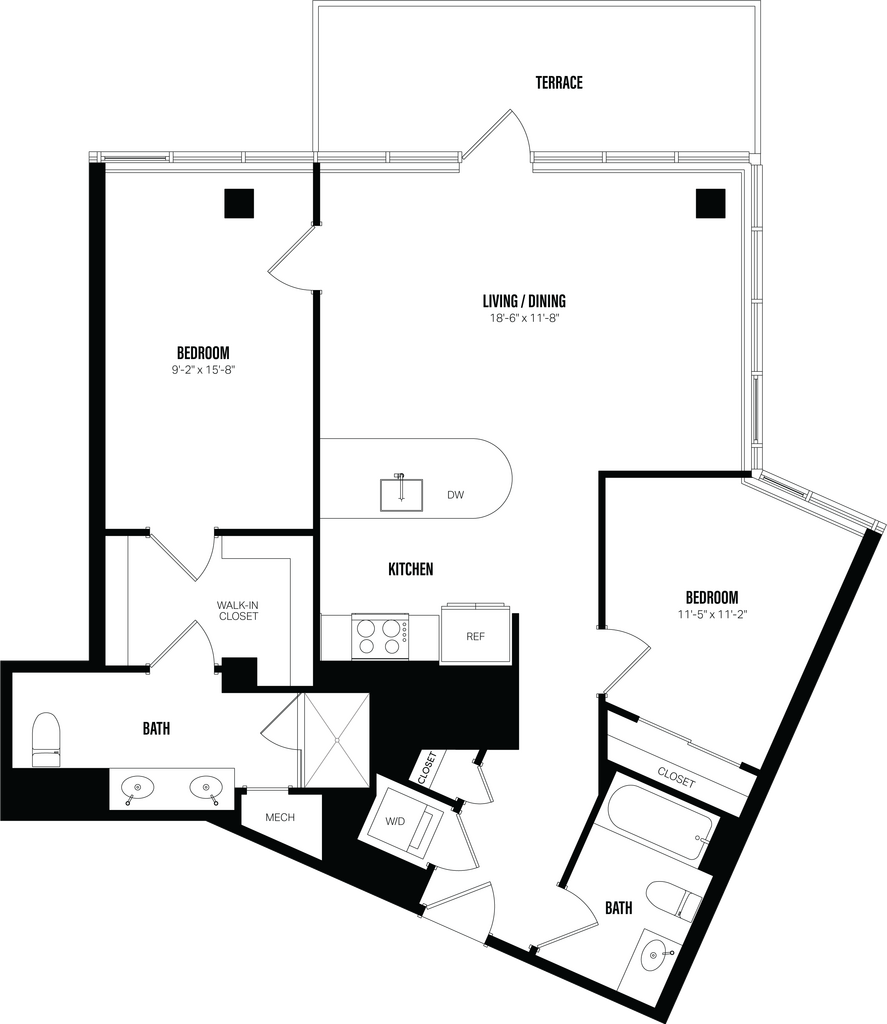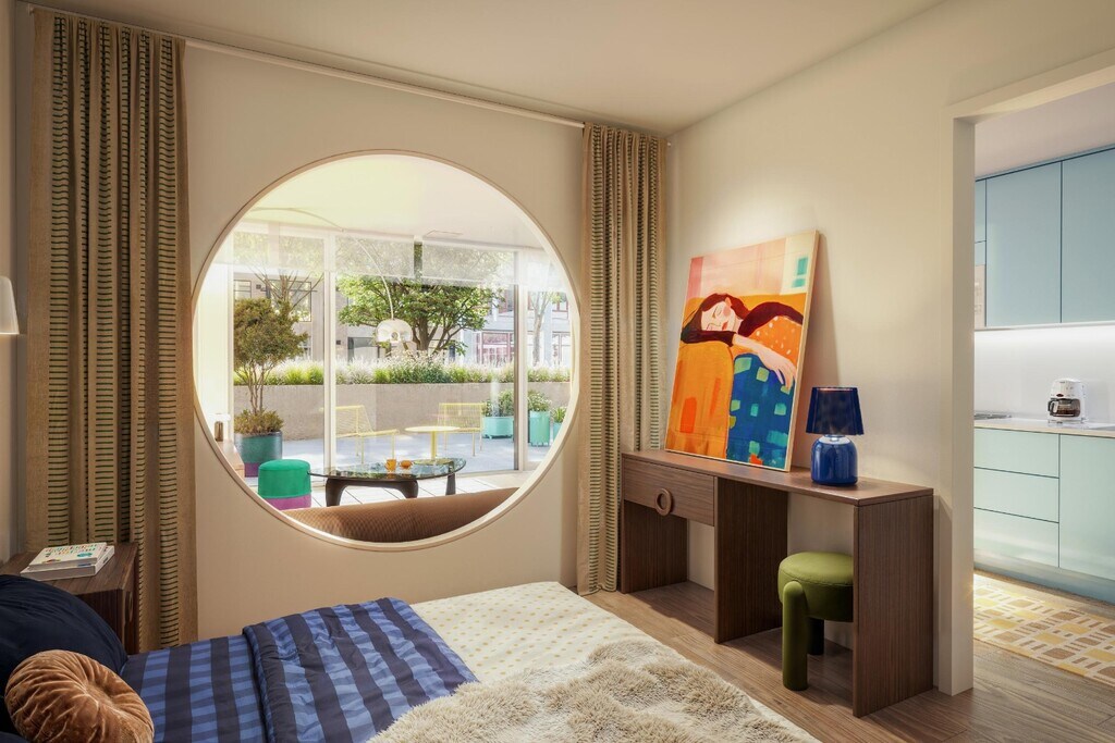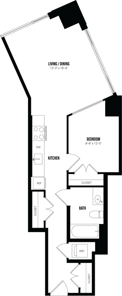 Modelo de apartamento: Studio-A2Desde $2,825Estudio, 1 Baño, 428 sq ftDisponible June 1, 2026![]()