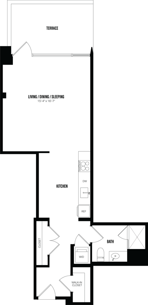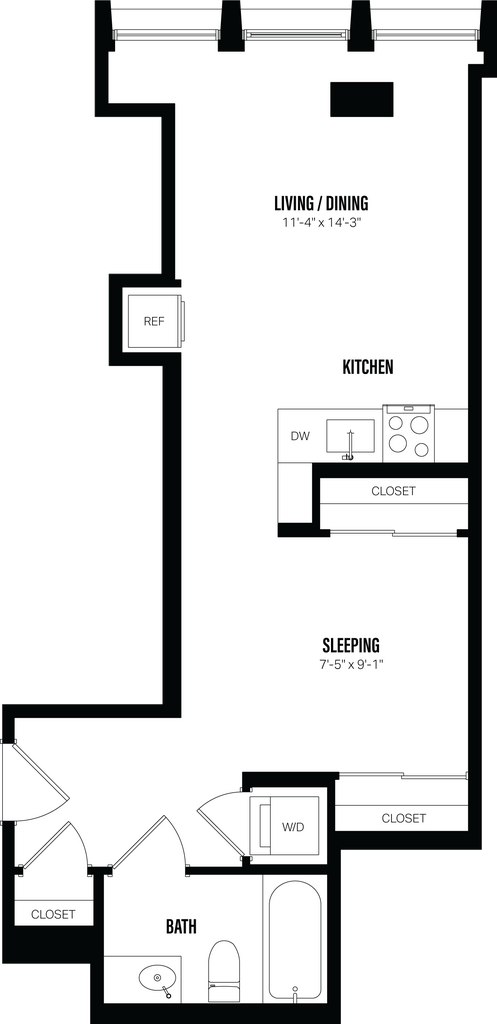 Estudio, 1 Baño, 428 pies²Disponible Jun 1Galería del Modelo