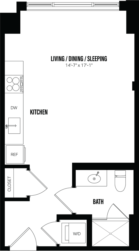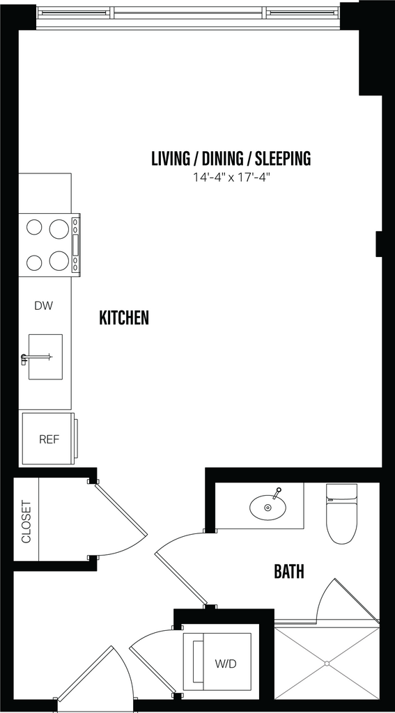 Studio-A5.1 - Plano Unidad de apartamento: 114Modelo de apartamento: Studio-A5.1$2,475Estudio, 1 Baño, 416 sq ftDisponible June 1, 2026![]()