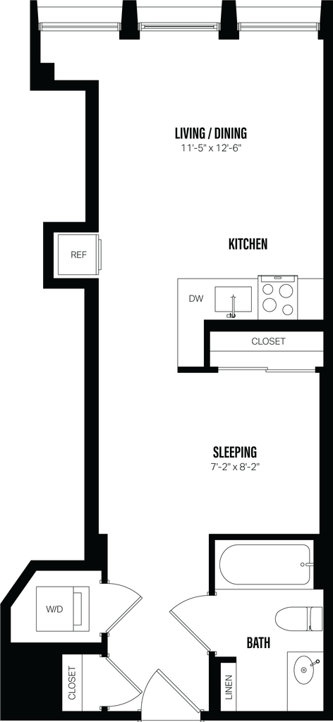 Studio-A2 - Plano Unidad de apartamento: 210Modelo de apartamento: Studio-A2$2,825Estudio, 1 Baño, 428 sq ftDisponible June 1, 2026![]()