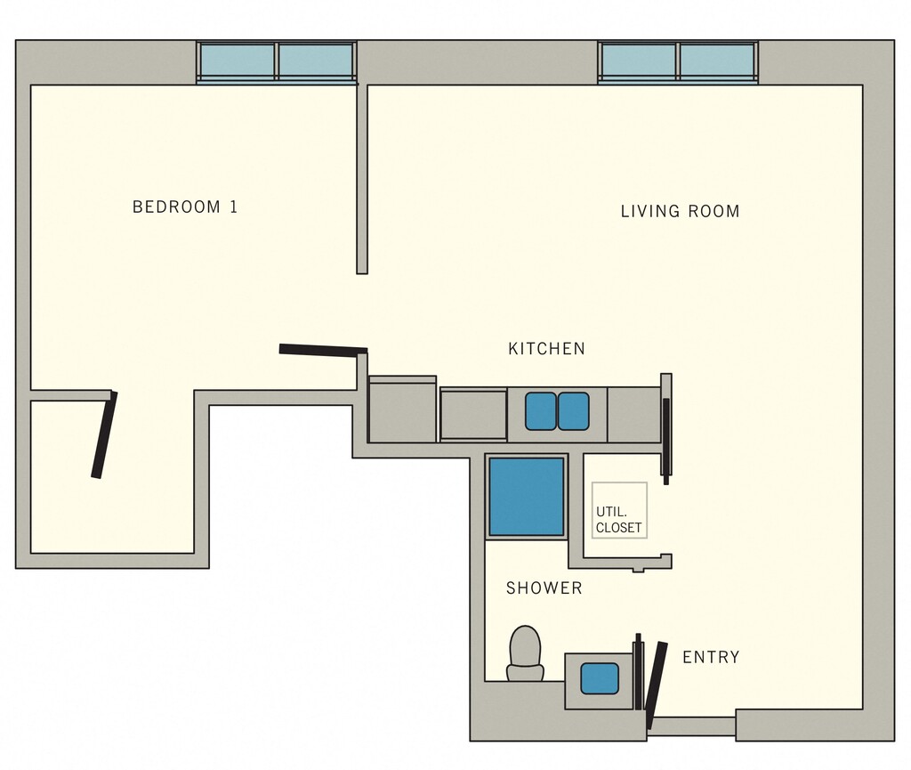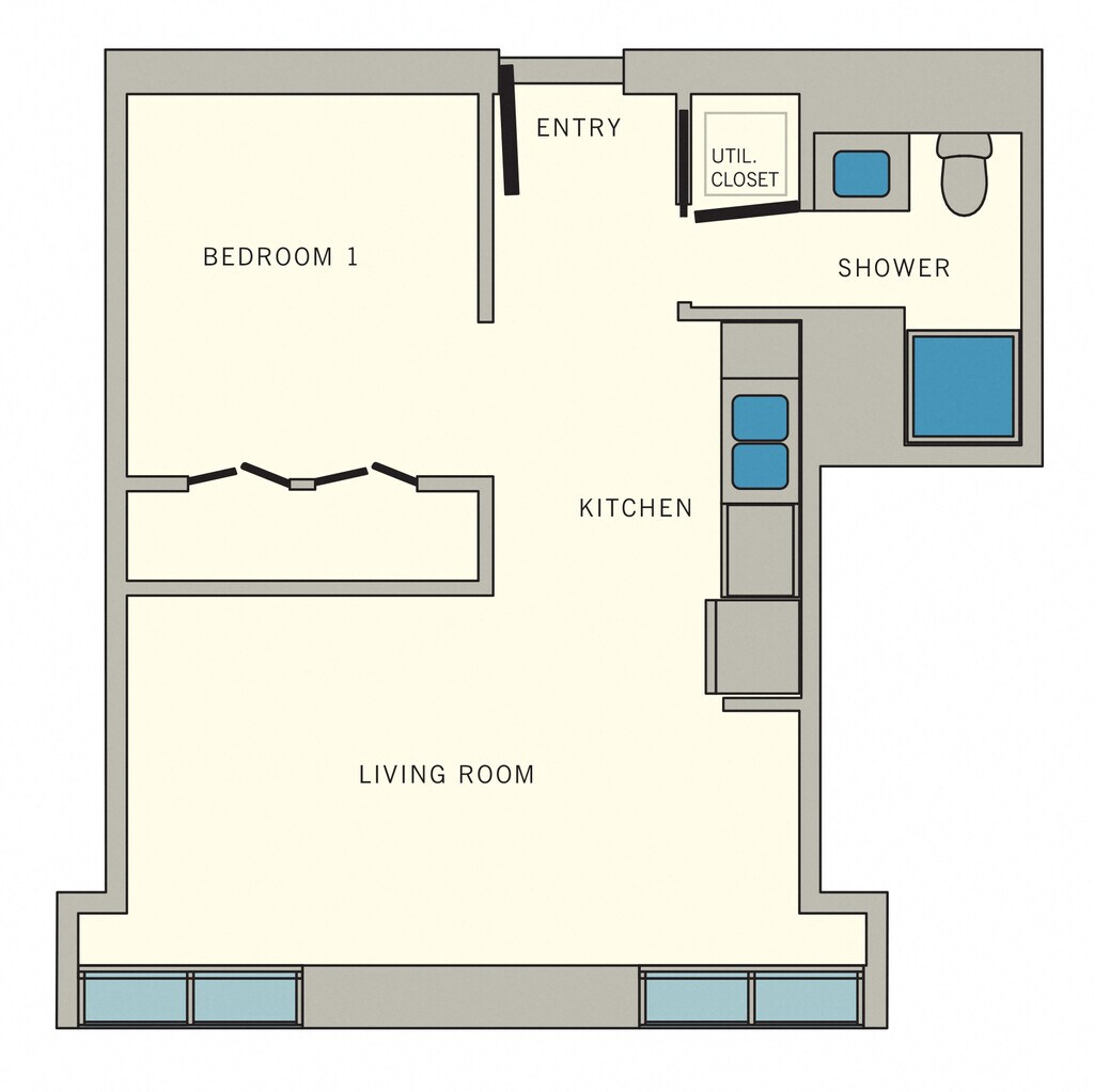 Modelo de apartamento: D1 - StudioLlame para PreciosEstudio, 1 Baño, 494 sq ftNo Disponible![]()