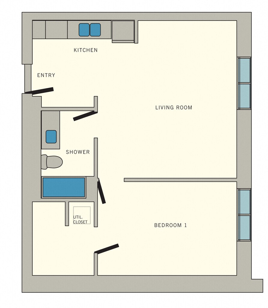 Estudio, 1 Baño, 523 pies²Galería del Modelo