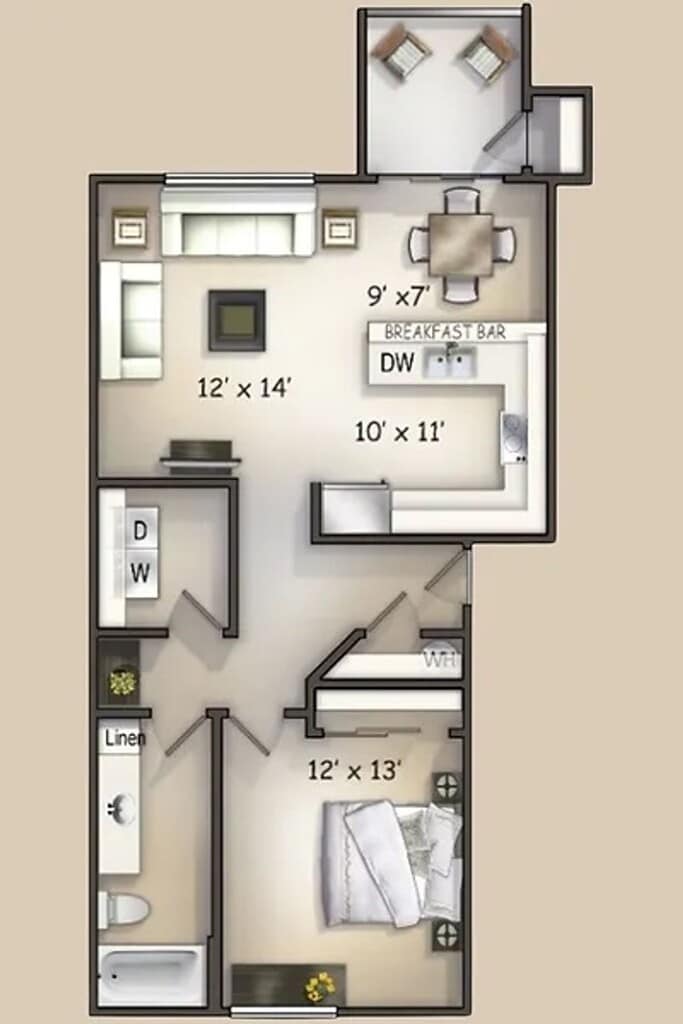 1 Dormitorio, 1 Baño, 800 pies²Disponible AhoraGalería del Modelo