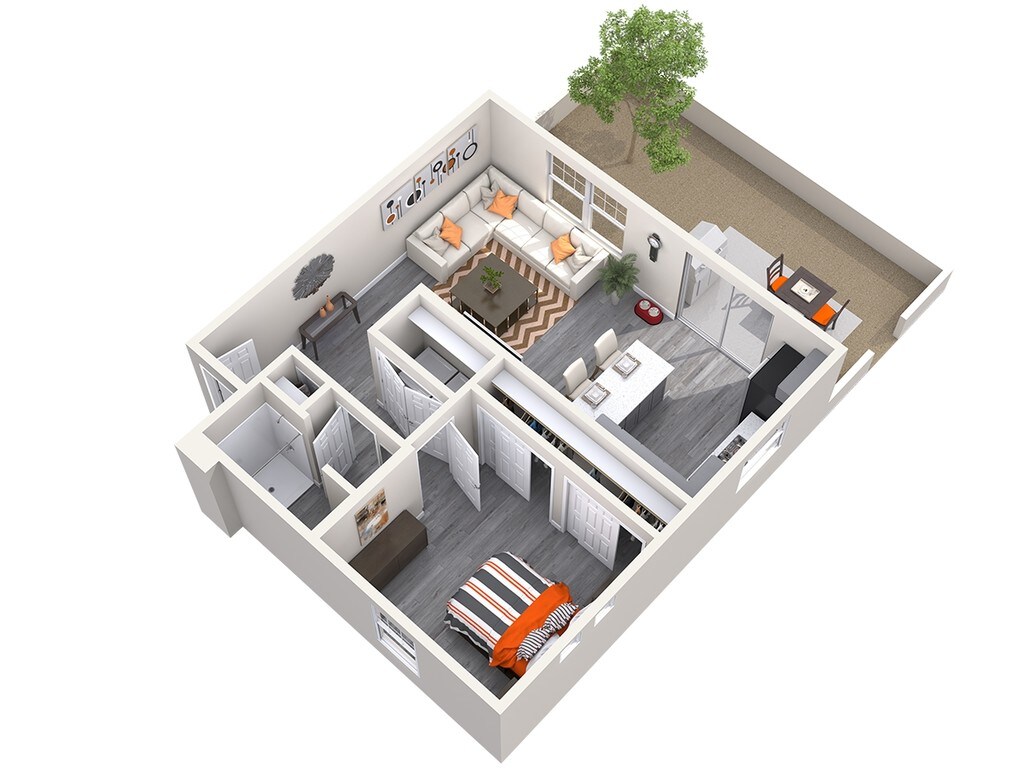 1 Dormitorio, 1 Baño, 635 pies²Galería del Modelo