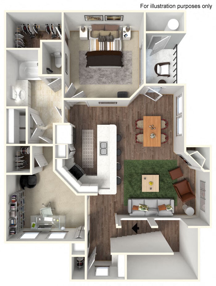 A2 1x1 - Plano 1 1 Bed 1 Bath + Den