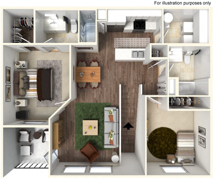 1 Dormitorio, 1 Baño, 814 pies²Galería del Modelo