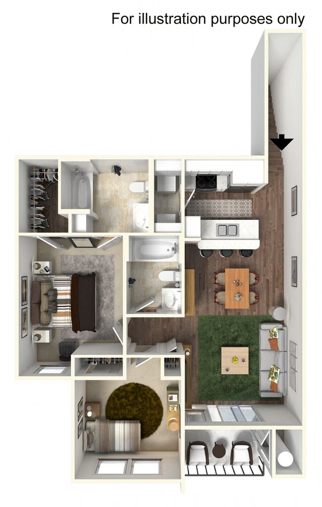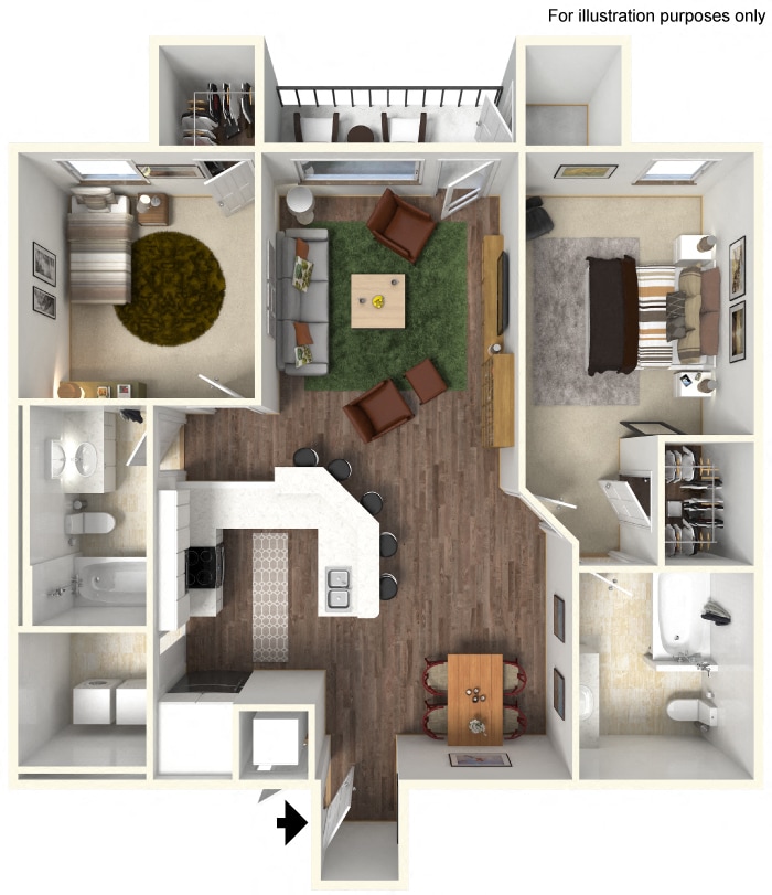 1 Dormitorio, 1 Baño, 1109 pies²El más grandeEsta opción tiene las unidades más grandes para este modeloGalería del Modelo
