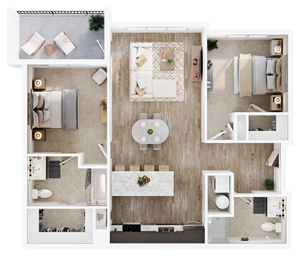 2 Dormitorios, 2 Baños, 1007 pies²Disponible AhoraGalería del Modelo