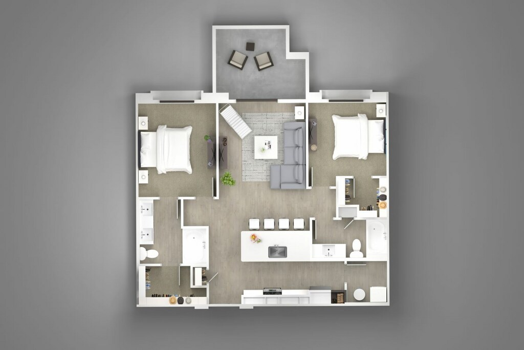 1 Dormitorio, 1 Baño, 809 pies²Disponible AhoraGalería del Modelo