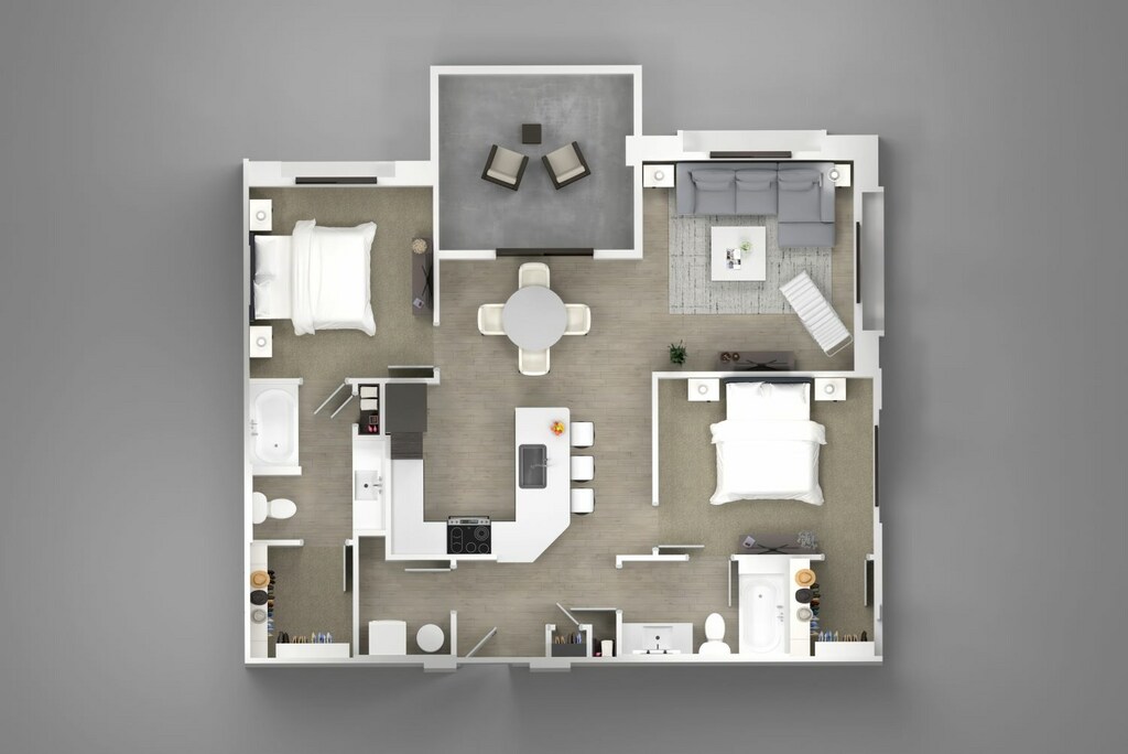 2 Dormitorios, 2 Baños, 1193 pies²Disponible AhoraEl más grandeEsta opción tiene las unidades más grandes para este modeloGalería del Modelo