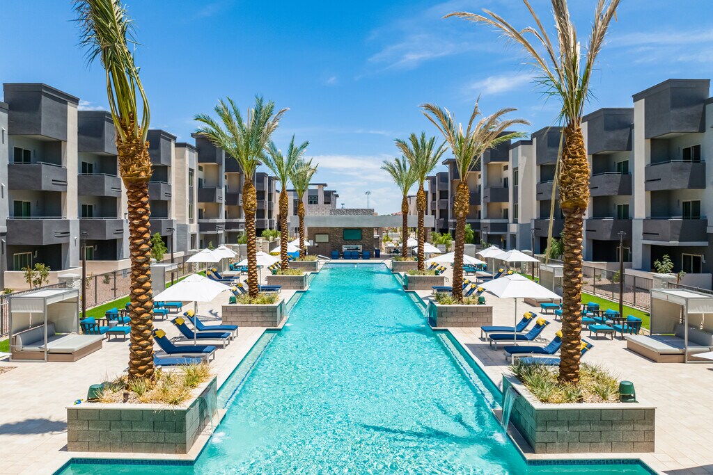 Bienvenido a Aviva Goodyear, la comunidad de apartamentos de lujo más reciente del creciente West Valley que aporta vida ecológica a los suburbios. En Aviva Goodyear, tiene un estilo de vida urbano contemporáneo con planos abiertos, apartamentos modernos y servicios de área común que le hacen querer compartir su hogar con otras personas.